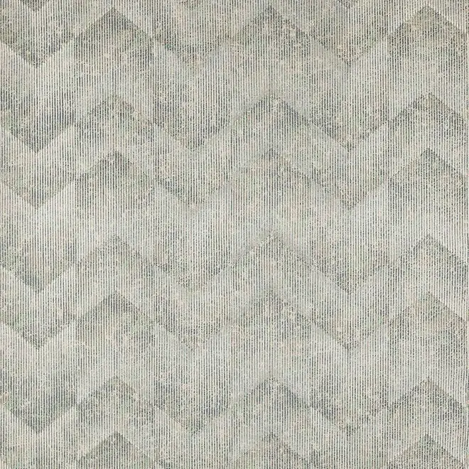 A fabric of contrasts embroidered on a marble effect ground, Escher’s chevron stripes introduce a contemporary take on an Art Deco theme.