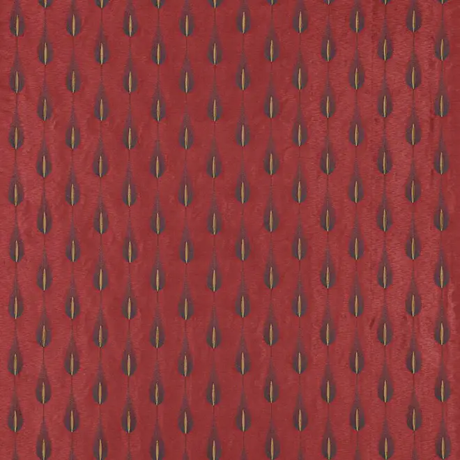 On a subtly shimmering silk effect ground, a blend of stitching techniques combines to create a unique approach to textural embroidery. Delicate fringing and a contrasting raised central detail elevate the elongated feather motif, adding an alternative dimension to this much loved design.