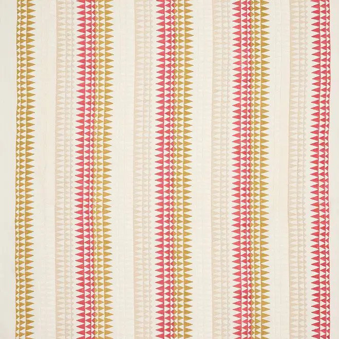 A modern take on geometric design, Pizaro combines the artistry of hand block printing with delicate embroidery to striking effect. The interplay between light-catching stitches and textured print creates a distinctive surface character, rich in depth and detail. This tactile stripe has a crafted elegance and brings artisan flair to contemporary interiors.