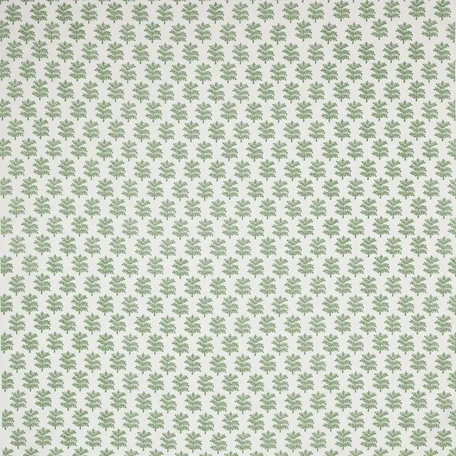 Miniature tree with crisply defined detail and simple all over repeat hand screen printed in eight fresh colour combinations on a pure cotton ground.
