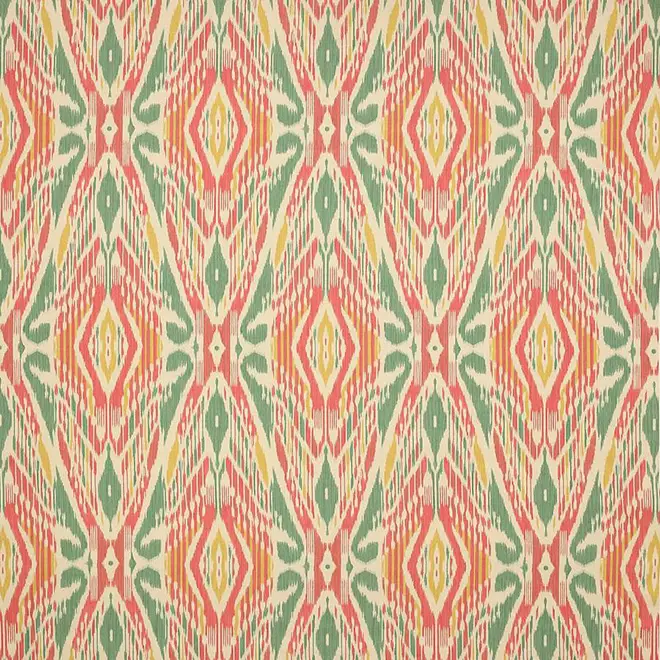 This colourful classic ikat design in beautiful colours, is based on an Uzbekistan coat document and printed on a linen base cloth.