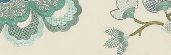 Stylised flowers embroidered on a cotton sateen ground. The beauty of the colours is enhanced by the sheen of the viscose.