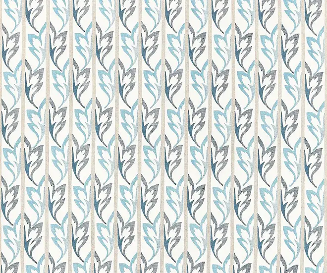 A large stylised leaves with horizontal lines are block-printed on either side of a woven stripe in 100% linen. Named after Dora Maar.