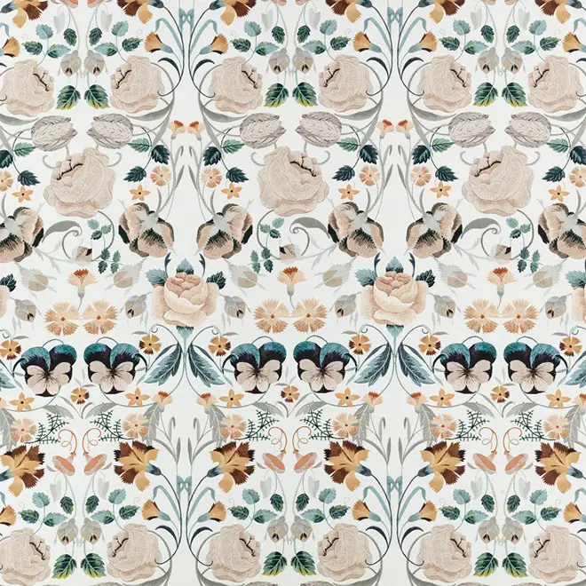 Swirls of elegant florals bloom as they climb a graceful cotton satin ground alive with detail and colour, in a mesmerising show of design. A quintessentially Temperley print, Bonita features heavily in the Temperley archive as a vivid embroidery on beautiful tulle gowns that have a wonderful air of romanticism. These exquisite embroideries were originally inspired by colourful folk-art, recreating the tell-tale mirroring effect that is often found in this vibrant artform. Maintaining the essence of this graceful design, Bonita is intricately printed to portray the fine stitches of embroidery and the mirroring of the floral across the cloth.