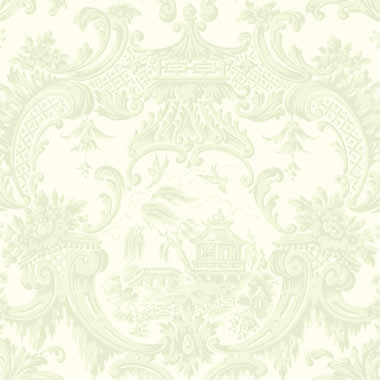 A reworking of an old damask classic, Chippendale China has been inspired by the orientalist style sweeping Victorian Britain in the early twentieth century. This elegant tonal wallpaper features pagodas set in cartouches of grand scrollwork. Produced in neutral shades of linen, stone, ivory and olive, alongside two stronger colourings of Chinese red and yellow.